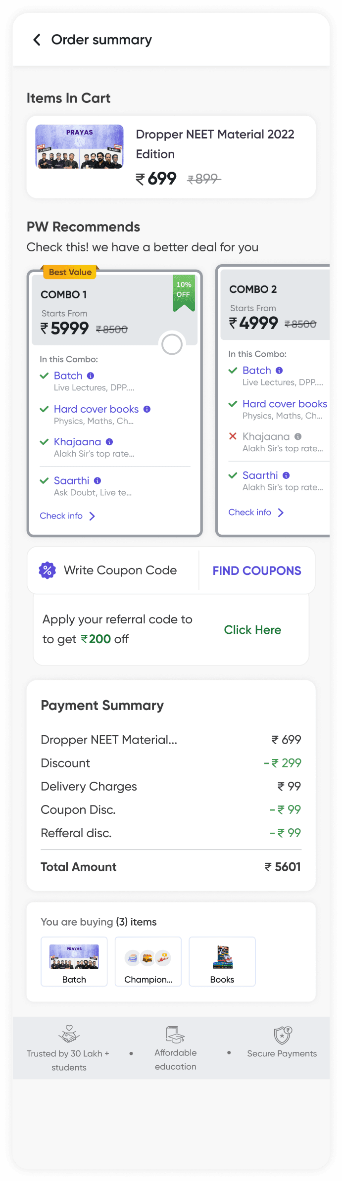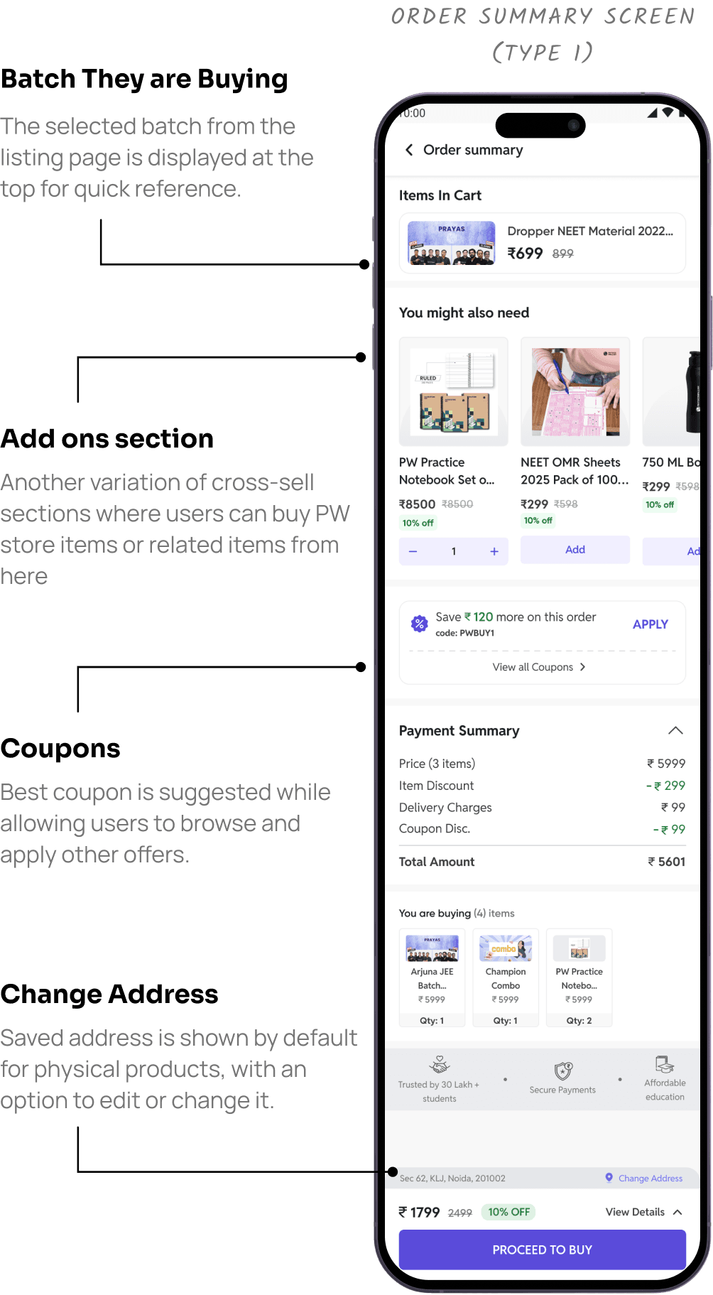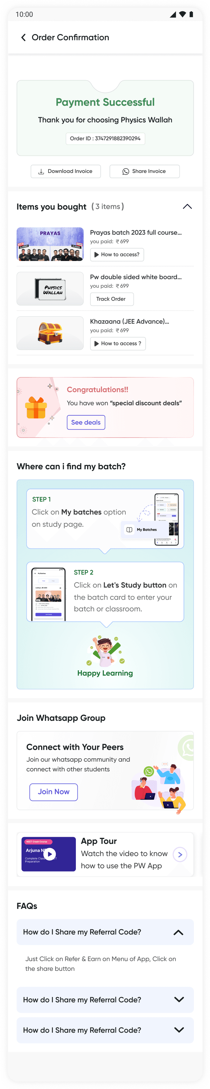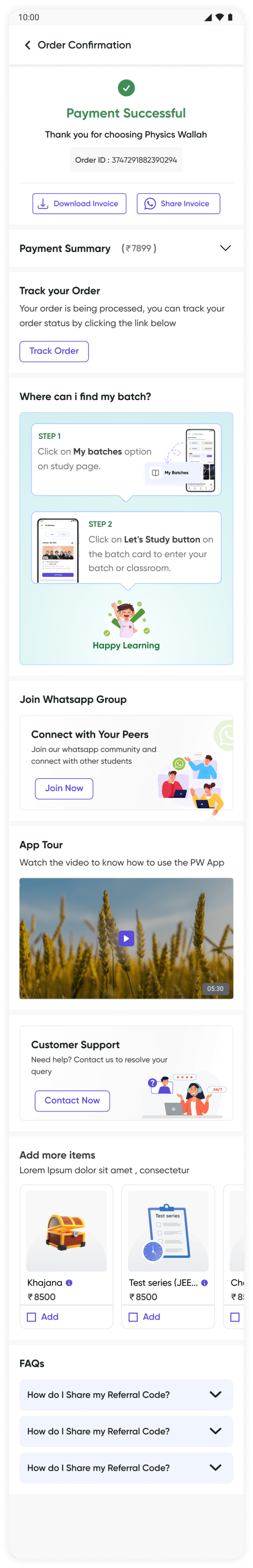 This project is related to enhancing the user's full purchase journey after deciding which batch to purchase.