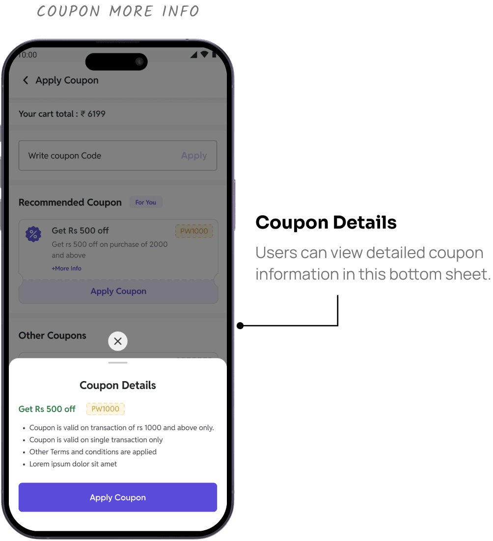 Designed end-to-end purchase flow covering summary, coupons, and order confirmation